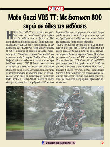 Mojave” ενώ η οικογένεια της classic enduro περι- 15% και διάρκεια 12-72 μήνες. Η τιμή της V85TT