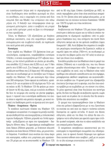 να πιάσει τα 80. Το Madison 125 θα φτάσει με σχετι- να πρόβλημα να συμβαδίσει με την κίνηση της πόλης.